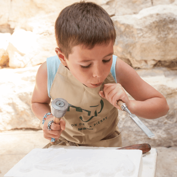 Mais la Maison de la Pierre, c’est aussi la possibilité de faire corps avec la matière. Vous voulez sentir l’aspect granuleux de la pierre sous vos doigts ou réaliser de jolis vitraux colorés ? Petits et grands, en famille ou entre amis, découvrez ces activités artistiques hors du commun en participant à des ateliers ou stages, encadrés par des professionnels.