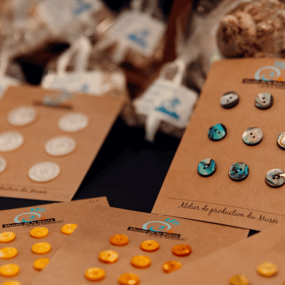 Enfin, découvrez les matières premières utilisées. La nacre blanche d’Australie, la nacre grise de Tahiti, le burgau de Singapour, l’haliotide des côtes californiennes et mexicaines et le Troca de Nouvelle Calédonie ou d’Indonésie : le musée est un voyage exotique pour les yeux !