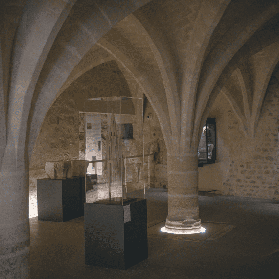 Grimpez ensuite au rez-de-chaussée pour voir les collections archéologiques médiévales. Elles sont installées autour d’un monumental socle en bronze qui porte une dédicace destinée à l’empereur Claude, et datée de 48 apr. J.-C. La salle voûtée d’ogives du 14e siècle est majestueuse !