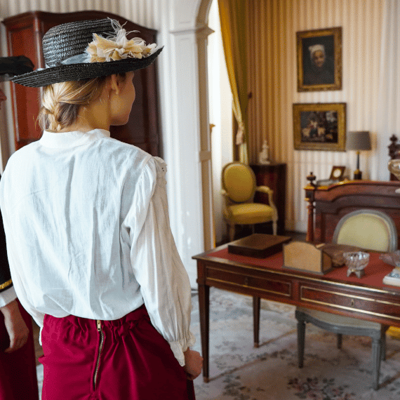 15, c’est le nombre de pièces que compose cette riche demeure. Les surprises s’accumulent en parcourant la cuisine, la salle à manger, le salon, les chambres et en découvrant le bureau-fumoir et sa belle bibliothèque. Les 5000 objets que possédaient la famille n’ont pas bougé : vaisselle, meubles, jouets, livres, tableaux.