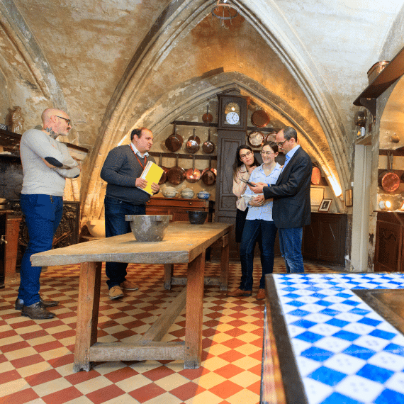 Vous débutez la visite par le sous-sol. Là, vous découvrez que ses soubassements ne sont rien moins que la muraille de Senlis et que le Palais a été construit sur les ruines d’une villa gallo-romaine.