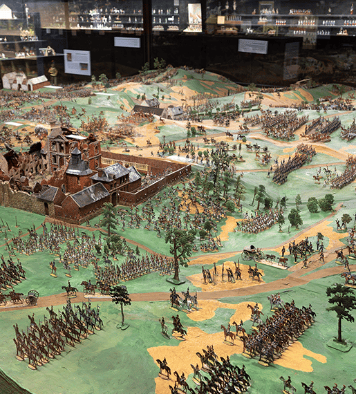 Retombez en enfance en admirant 45 000 figurines modelées et peintes avec grand soin. Véritables petites sculptures miniatures, elles sont disposées en dioramas – des vastes compositions – regroupant jusqu’à 12 000 pièces et faisant jusqu’à 25 mètres de longueur. Elles reconstituent fidèlement les célèbres batailles du Premier Empire mais aussi certains épisodes de l’histoire de France. Alors, envie de jouer aux petits soldats de plomb ?