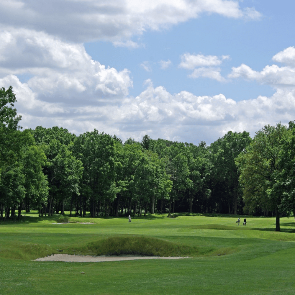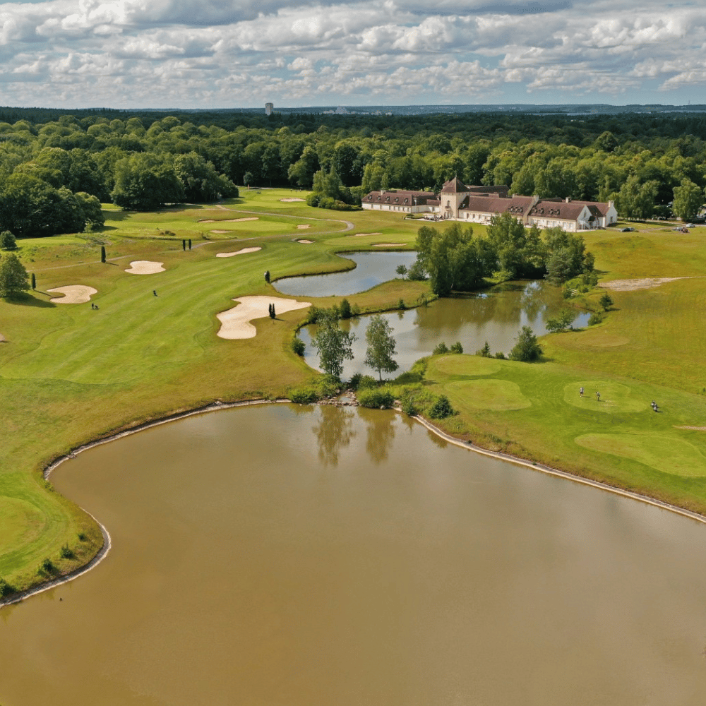 Ontworpen in harmonie met een park met genereuze vormen, loopt deze baan met balans en elegantie onder de honderd jaar oude bomen. Dit is een domein voor ervaren golfers, maar de 6-holes ‘pitch and putt’-baan die je hier ook vindt, is dan weer ideaal voor beginners en als training. Het parcours, dat omgeven wordt door prachtige beuken- en eikenbossen, biedt zowel een wandeling op de heuvels met uitzicht op de streek als door kreupelhout.