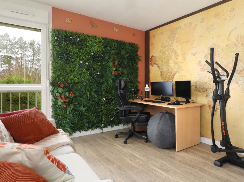 Avec sa touche végétalisée, cette pièce offre un environnement de travail apaisant et inspirant.