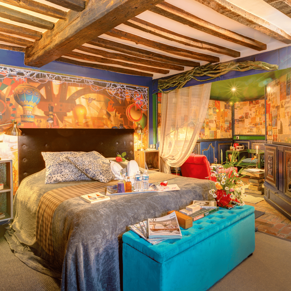 Depuis les chambres, vous pourrez admirer d’un côté le Château de Gisors, emblématique des Templiers, et de l’autre le bois de l’Aunette. Chaque chambre, portant le nom de grandes figures ayant accompli des « folies » dans leurs domaines (aéronautique, automobile, navigation), rend hommage aux pionniers qui ont marqué l’histoire. Un clin d’œil parfait pour une escapade romantique et inspirante.