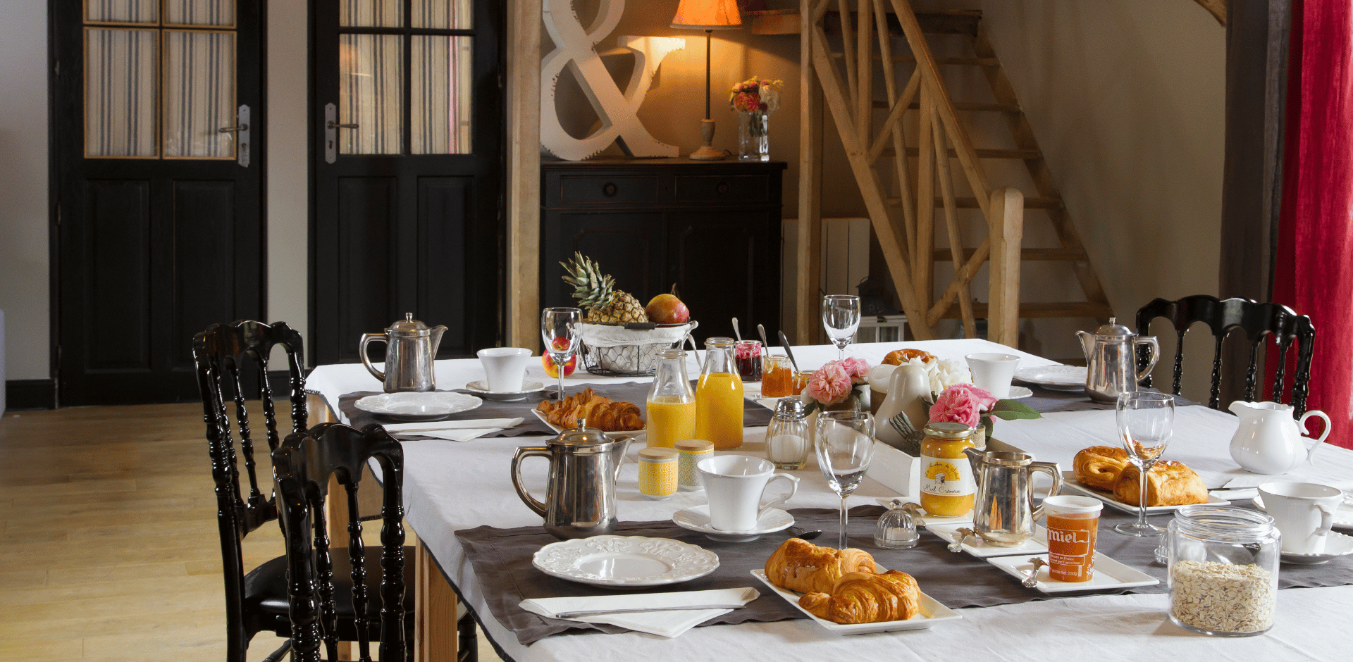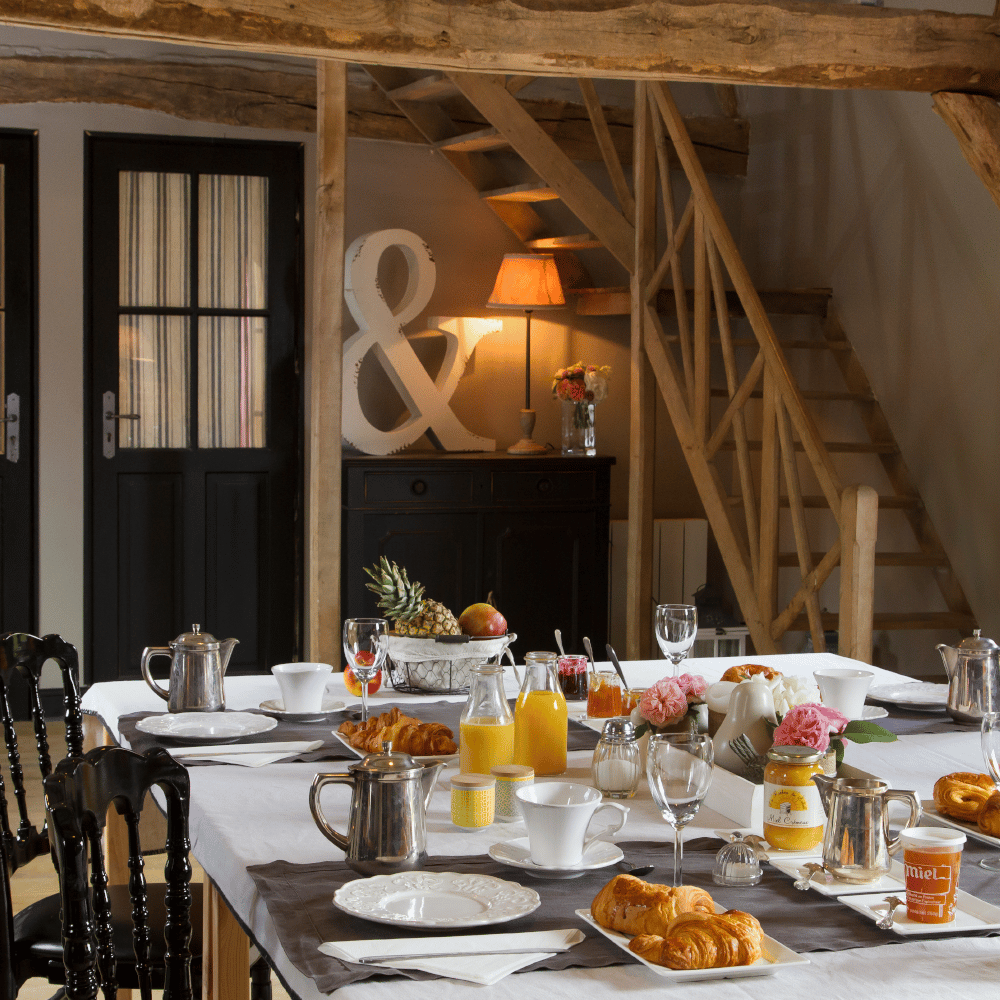 Le matin, Cécile, en véritable maîtresse de maison, prépare un petit-déjeuner copieux et fait maison, pour bien commencer la journée. En hiver, quoi de mieux que de se réchauffer au coin de la majestueuse cheminée de la salle à manger, un cadre idéal pour profiter de moments de complicité à deux.