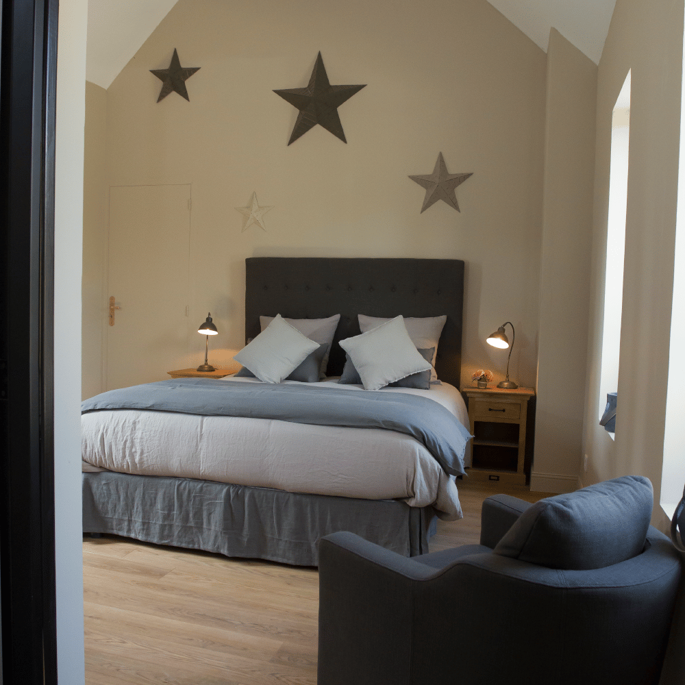 Jean-Philippe et Djanaeel vous proposent 14 chambres, dont 2 suites, toutes décorées avec goût et raffinement. Chaque chambre porte un nom évocateur : wengé, prune, anis, chocolat, grège, ardoise, grise… Il vous suffira de choisir la couleur qui vous inspire le plus pour votre séjour.