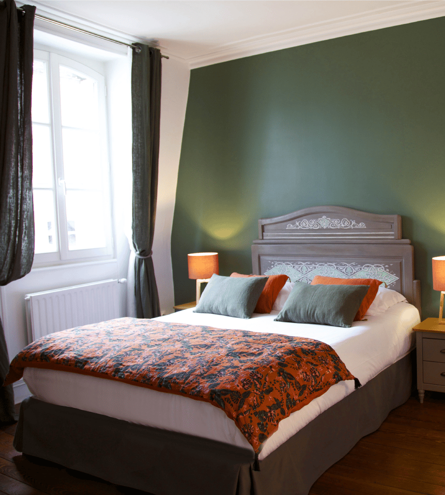 Cette maison, à la façade kaki et au charme vintage vous accueille en plein cœur de la cité médiévale. Tapisserie urban jungle, gravures anciennes, fauteuils crapaud en velours, miroir-soleil, dame-jeanne : chaque chambre est décorée avec du mobilier actuel, chiné ou de famille pour recréer l’atmosphère feutrée d’un boudoir.